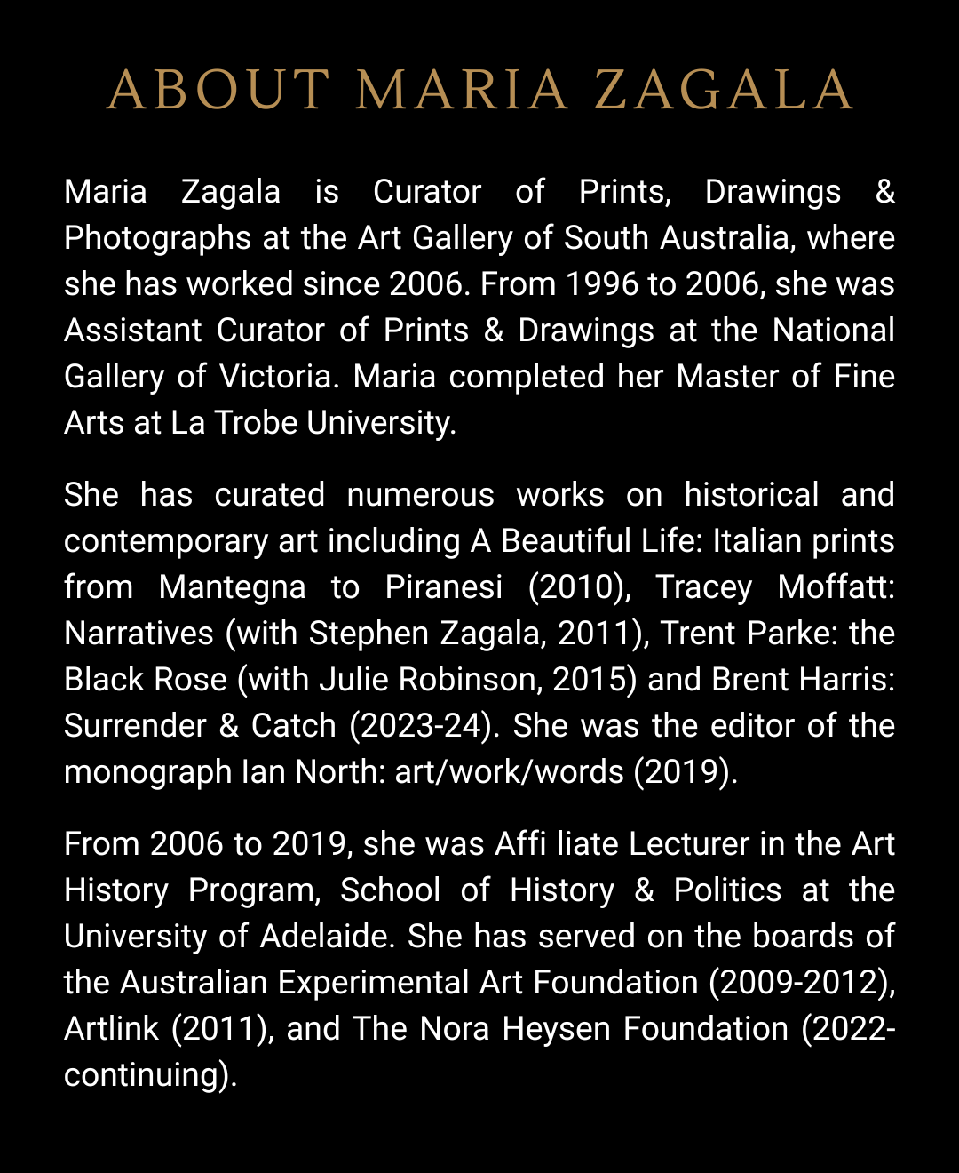 Maria Zagala, Curator of Prints, Drawings and Photographs, Art Gallery of South Australia