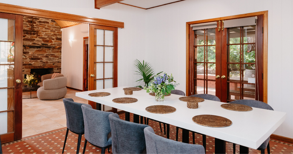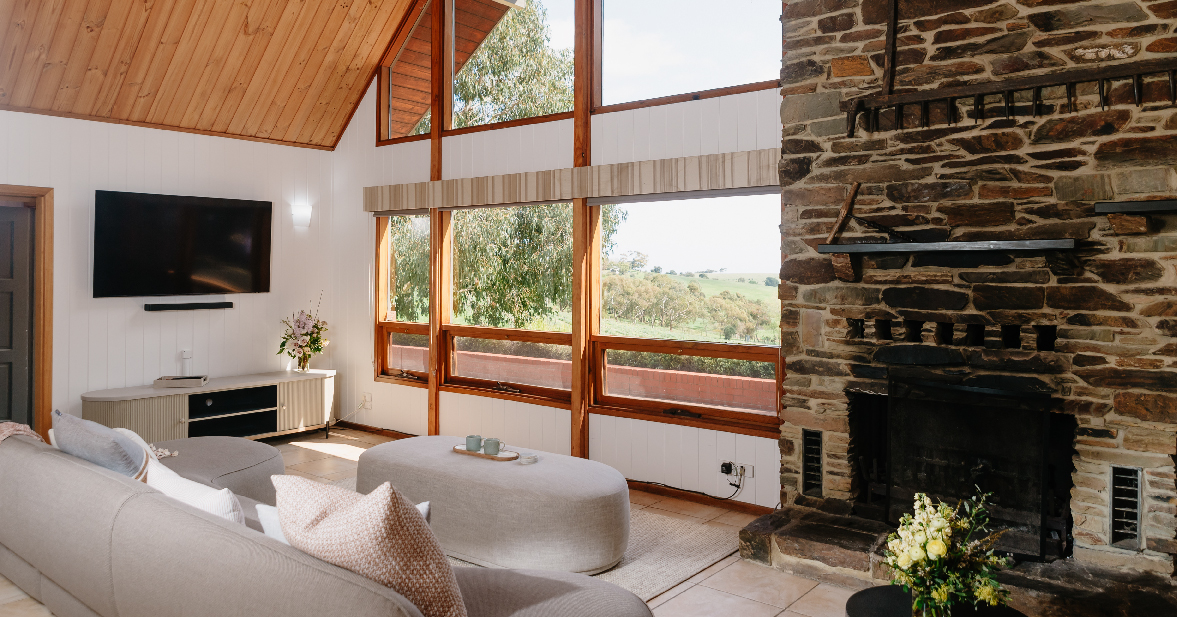 The Chapel Hill Winery Guest House on our estate is a chalet style home nestled in the vines with sweeping views through the Onkaparinga Gorge and to the Gulf St Vincent. There is a bathroom for each of the three queen bedrooms as well as a separate powder room.